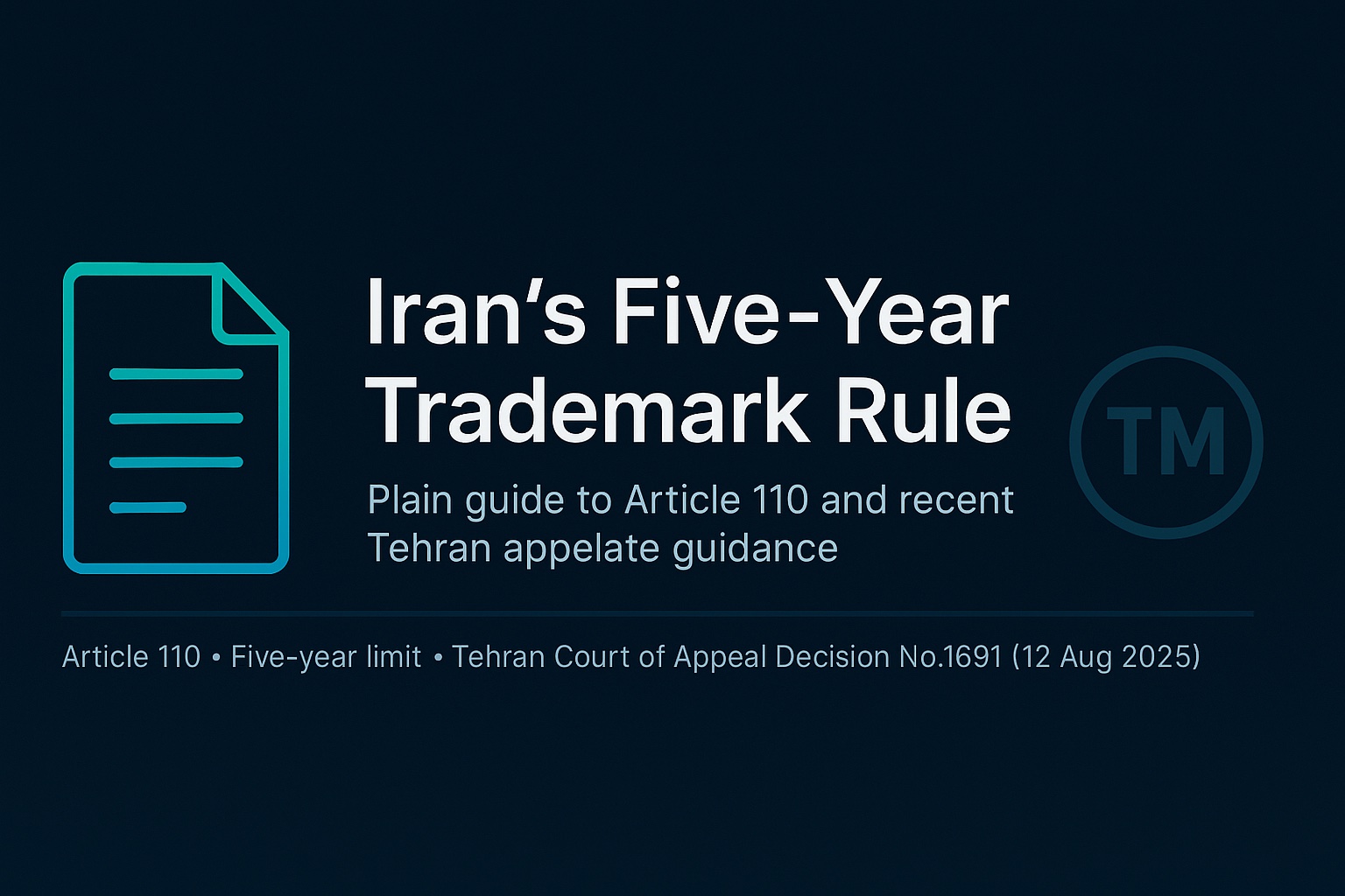 Iran’s new Law on the Protection of Industrial Property, effective July 2025, reshapes the country’s IP regime by introducing utility models, trade-secret protection, and unfair-competition rules — but its new five-year limit for trademark invalidation under Article 110 has stirred controversy.